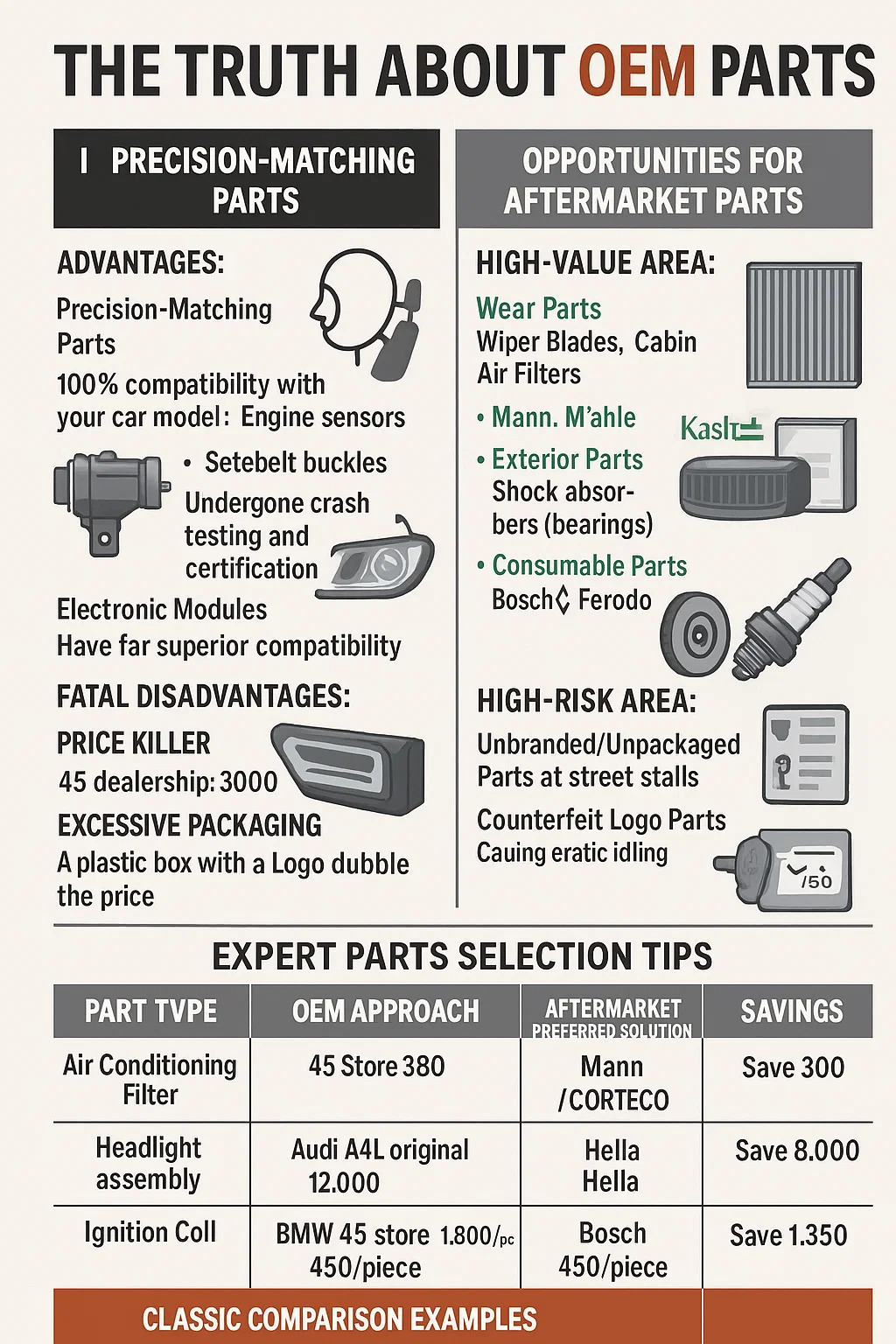 Questa domanda è come chiedere: "Le custodie originali per telefoni sono sempre migliori di quelle di terze parti?", ma non necessariamente. Il parti automobilistiche il mercato è complesso e sfaccettato; dipende dal tipo di parte specifico e dal prestigio del marchio. Ecco la logica per giudicare: