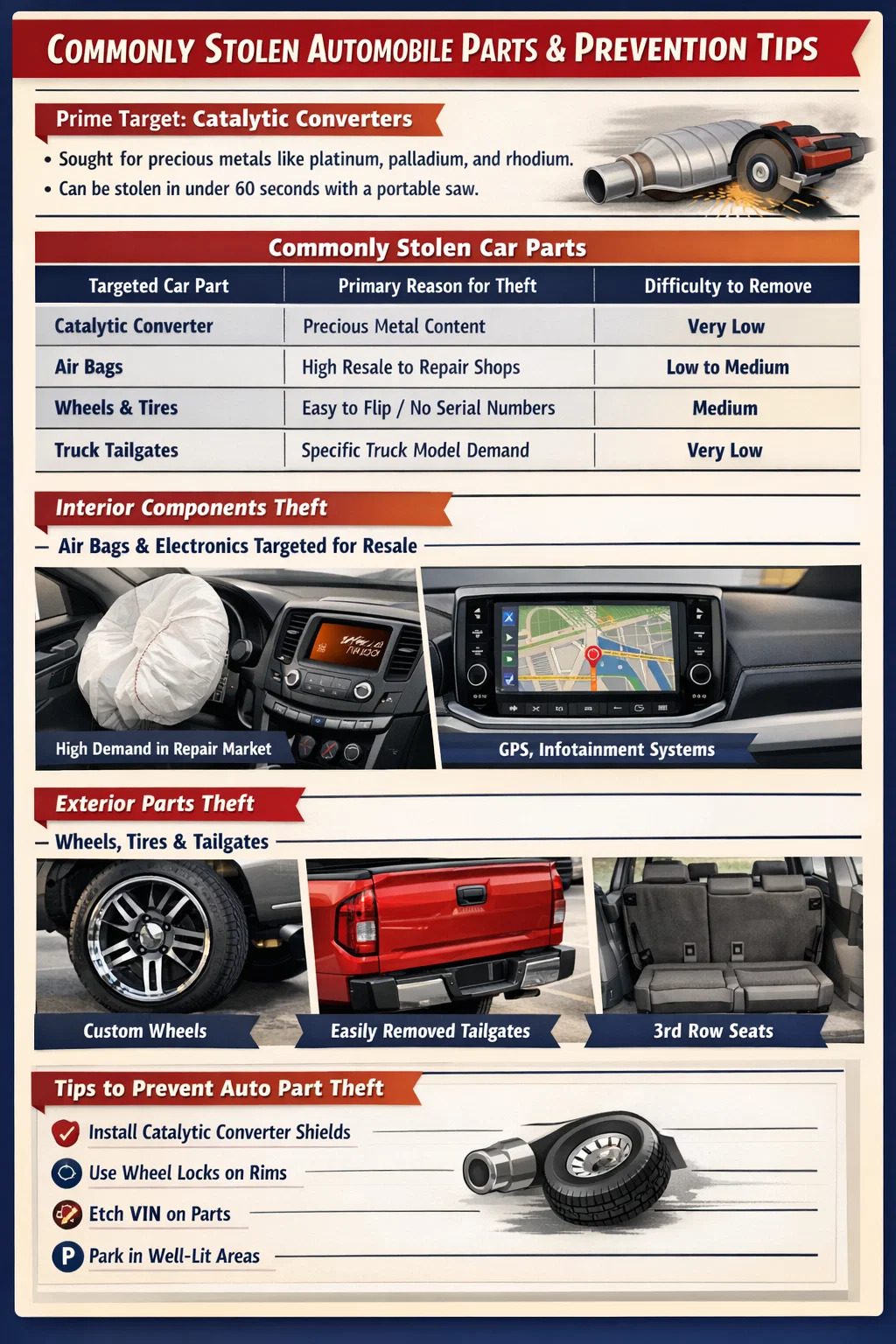 Proteggi il tuo parti di automobili richiede un mix di barriere fisiche e abitudini di parcheggio intelligenti. L’implementazione di quanto segue può ridurre significativamente il rischio: